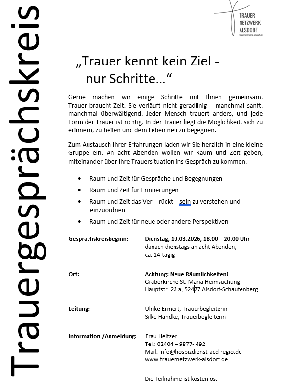 Das Trauernetzwerk Alsdorf ist dann an der Seite von Trauernden, auch und gerade … weiterlesen